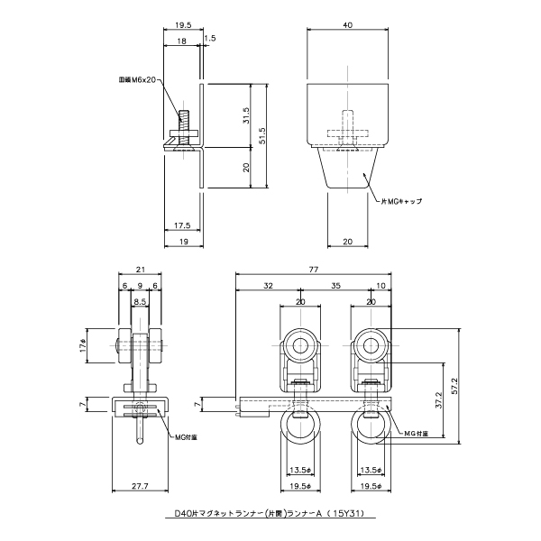 D40片マグネットランナー(片開)ランナーAタイプ