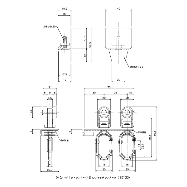 D40片マグネットランナー(片開)ワンタッチランナーAタイプ