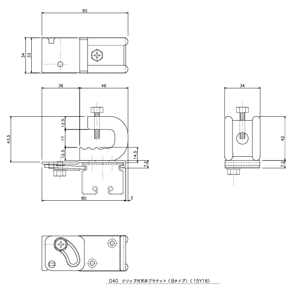 D40クリップ付天井ブラケットBタイプ
